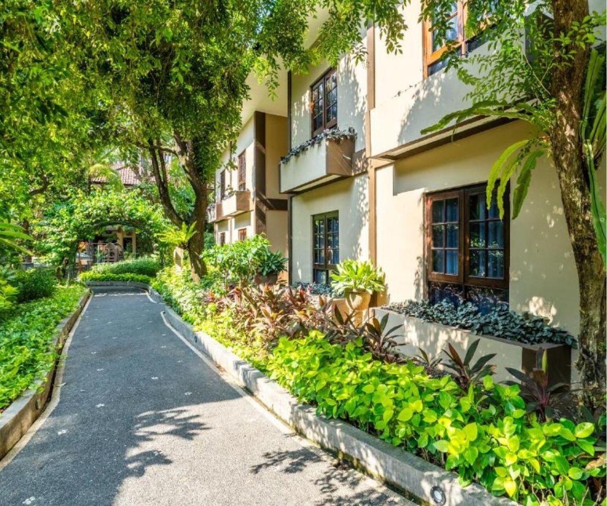 Guests can unwind in the tropical courtyard with a large outdoor swimming pool, kids’ wading area, and a lively poolside bar. For wellness, there’s the rejuvenating Sukha Spa and a fully equipped gym for staying active.