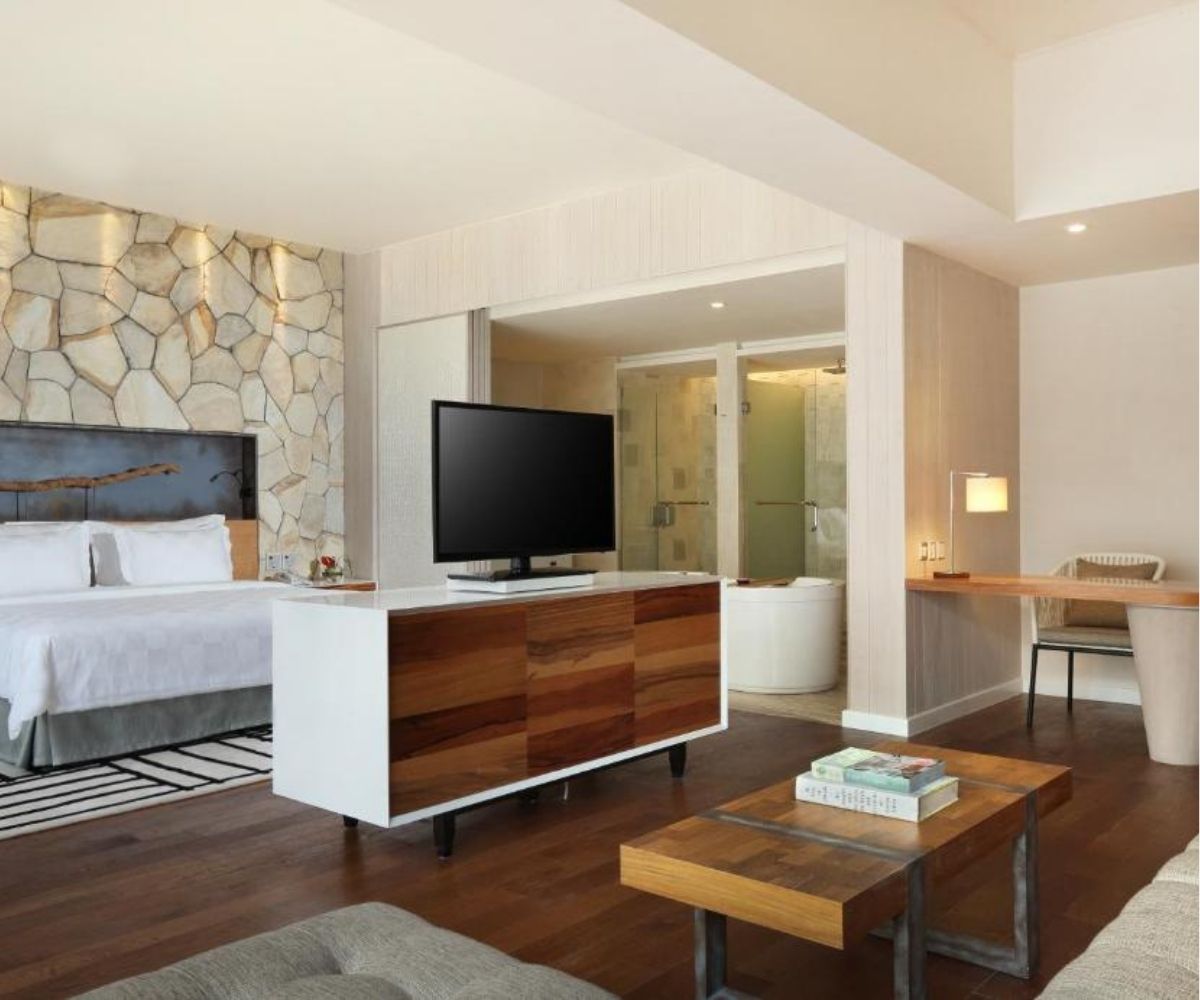 Suites and villas feature spacious open-plan layouts, warm textures, oversized bathrooms, and premium bedding — plus the resort’s signature 24-hour “Anytime Breakfast”.