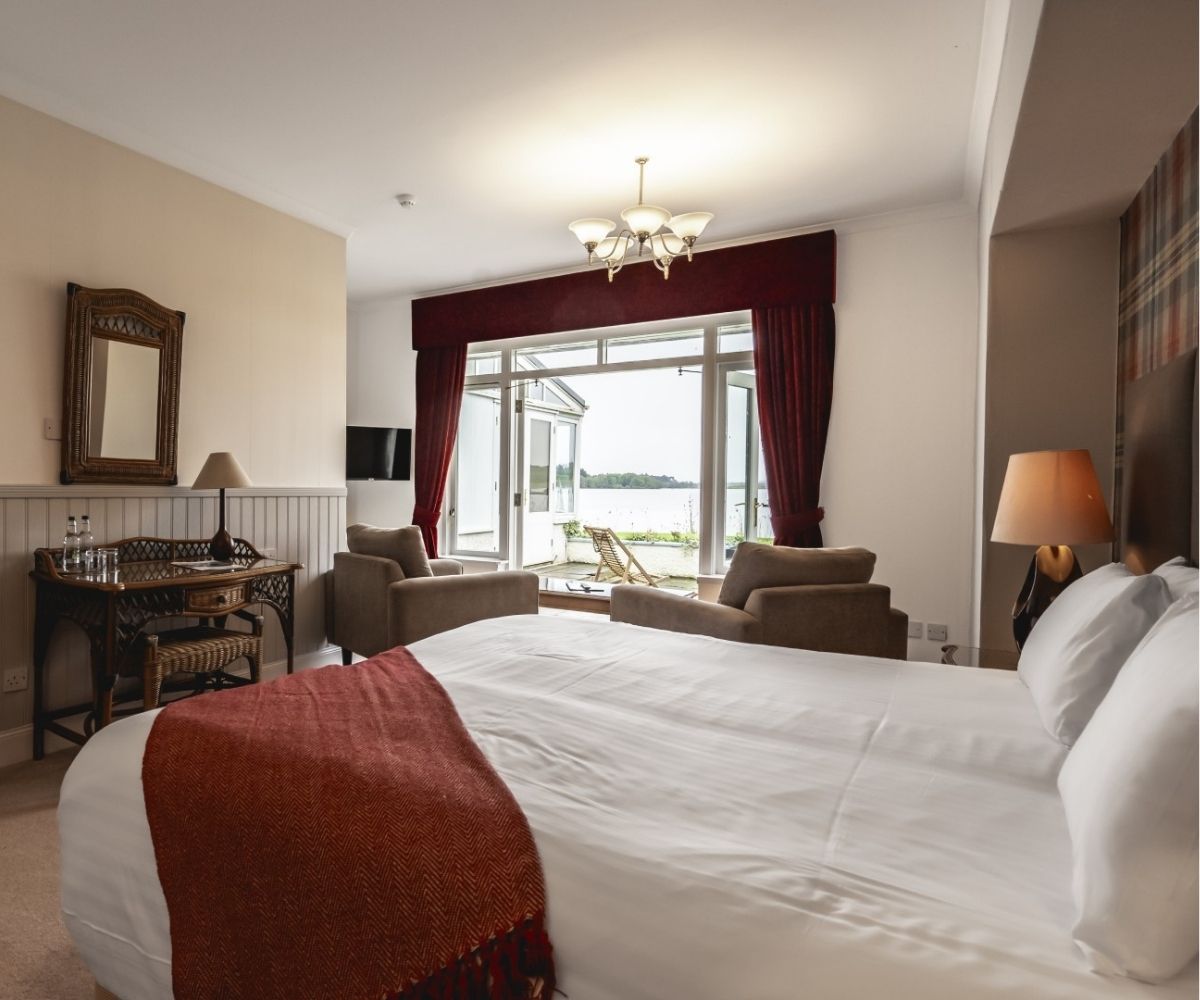The hotel’s thoughtfully refurbished rooms and suites mirror the tranquillity of their surroundings, with warm tones, elegant furnishings and views across the loch or manicured gardens. Each room features plush bedding, free Wi-Fi, flat-screen TV, tea and coffee facilities and spacious bathrooms—creating a welcoming retreat after a day of discovery. Upgrade to a Loch View Room for sweeping water vistas and ever-changing Scottish skies.