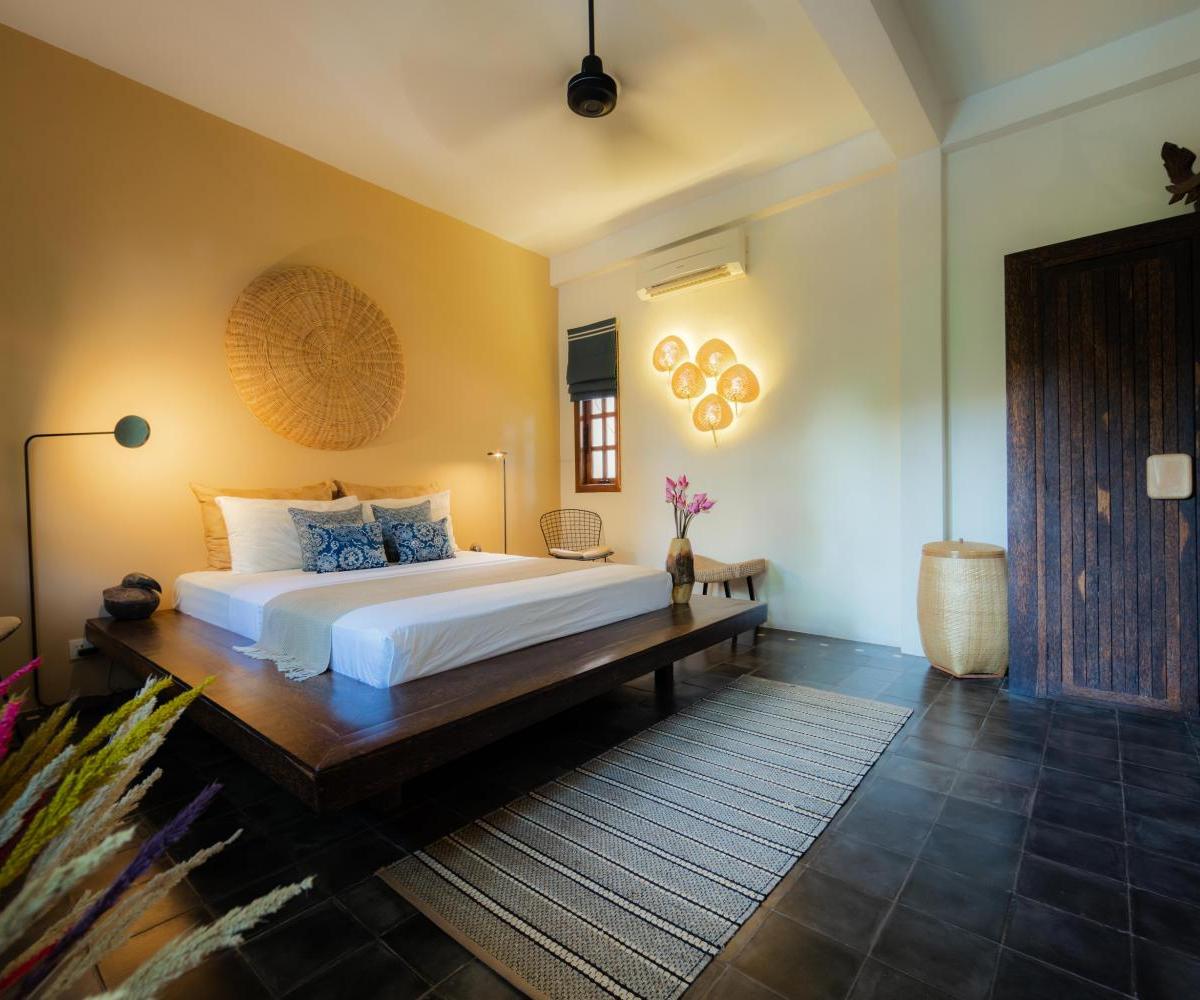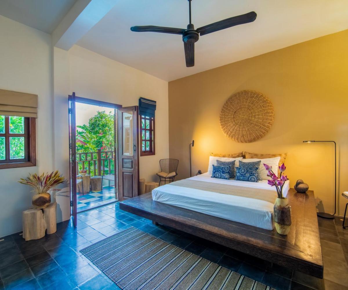 The rooms and suites exude Khmer charm with a modern twist—featuring locally crafted furniture, contemporary Cambodian artwork, and rich silk textiles. Each space is thoughtfully designed for comfort, offering plush bedding, spacious bathrooms, and private terraces or balconies with garden views.
