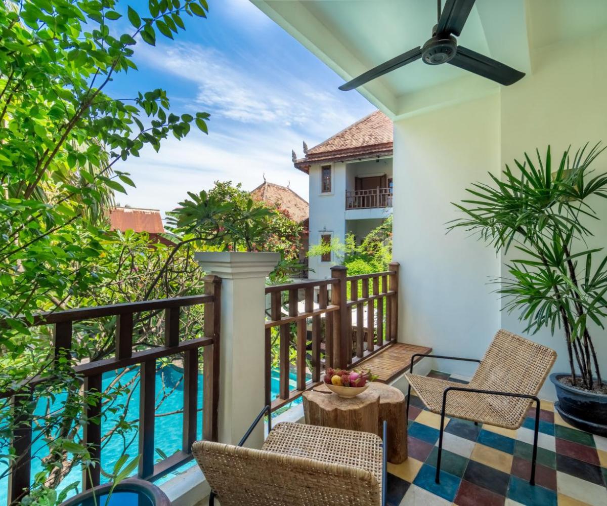 Surrounded by swaying palms and blooming tropical flowers, the resort invites guests to relax in its tranquil setting. Lounge by the shimmering pool, enjoy a peaceful moment in a shaded alcove, or wander through the vibrant gardens that make this resort a true sanctuary in the heart of Siem Reap.